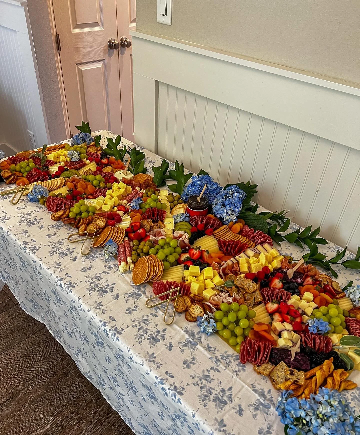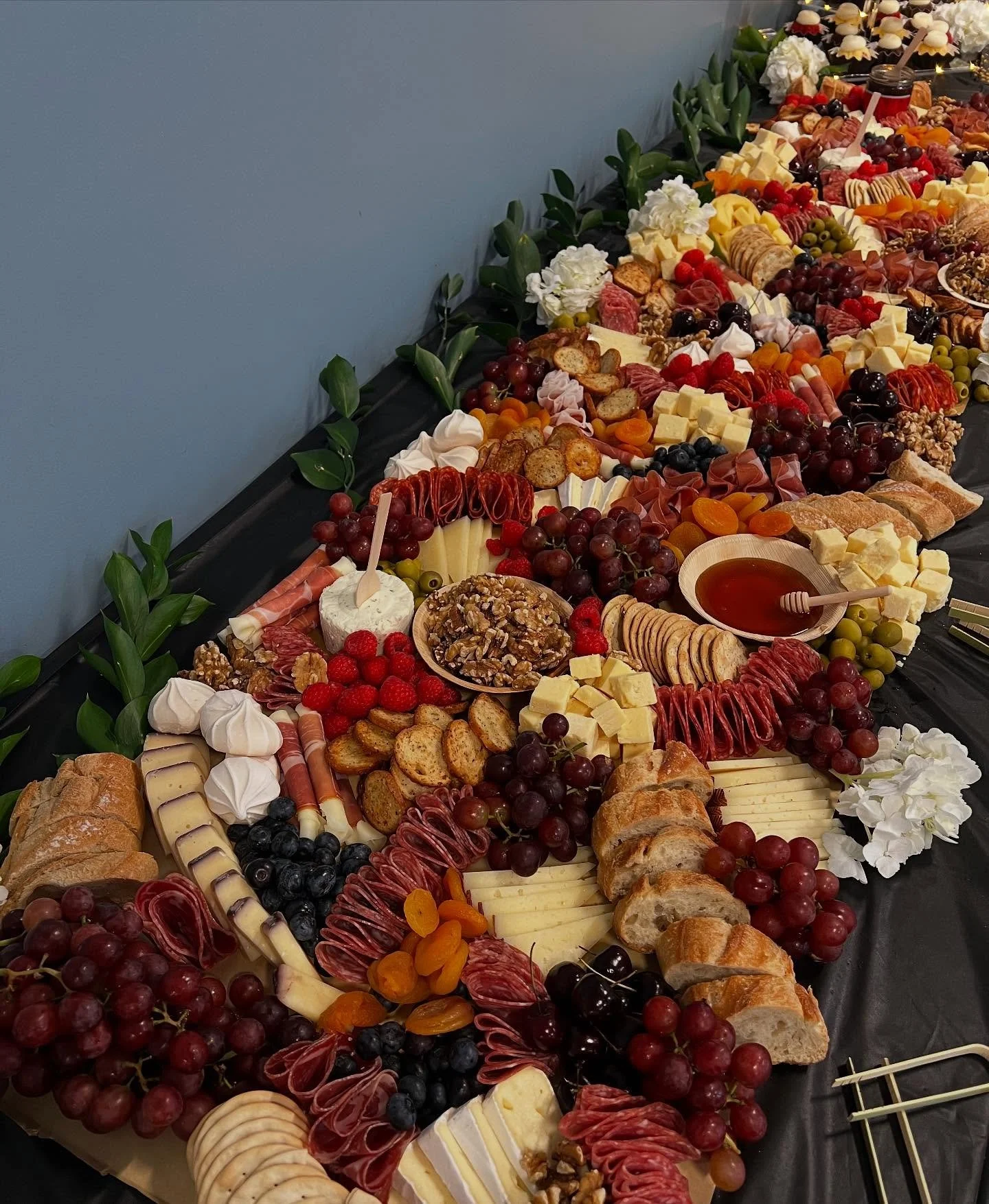 Elevate your event with our stunning grazing tables, the ultimate centerpiece for any gathering. Grazing tables are an artful display of premium cheeses, cured meat, fresh fruits, gourmet crackers, and an assortment of delicious accompaniments, all beauitfully arranged to delight your guest. Perfect for weddings, corporate events, or celebrations of any kind.