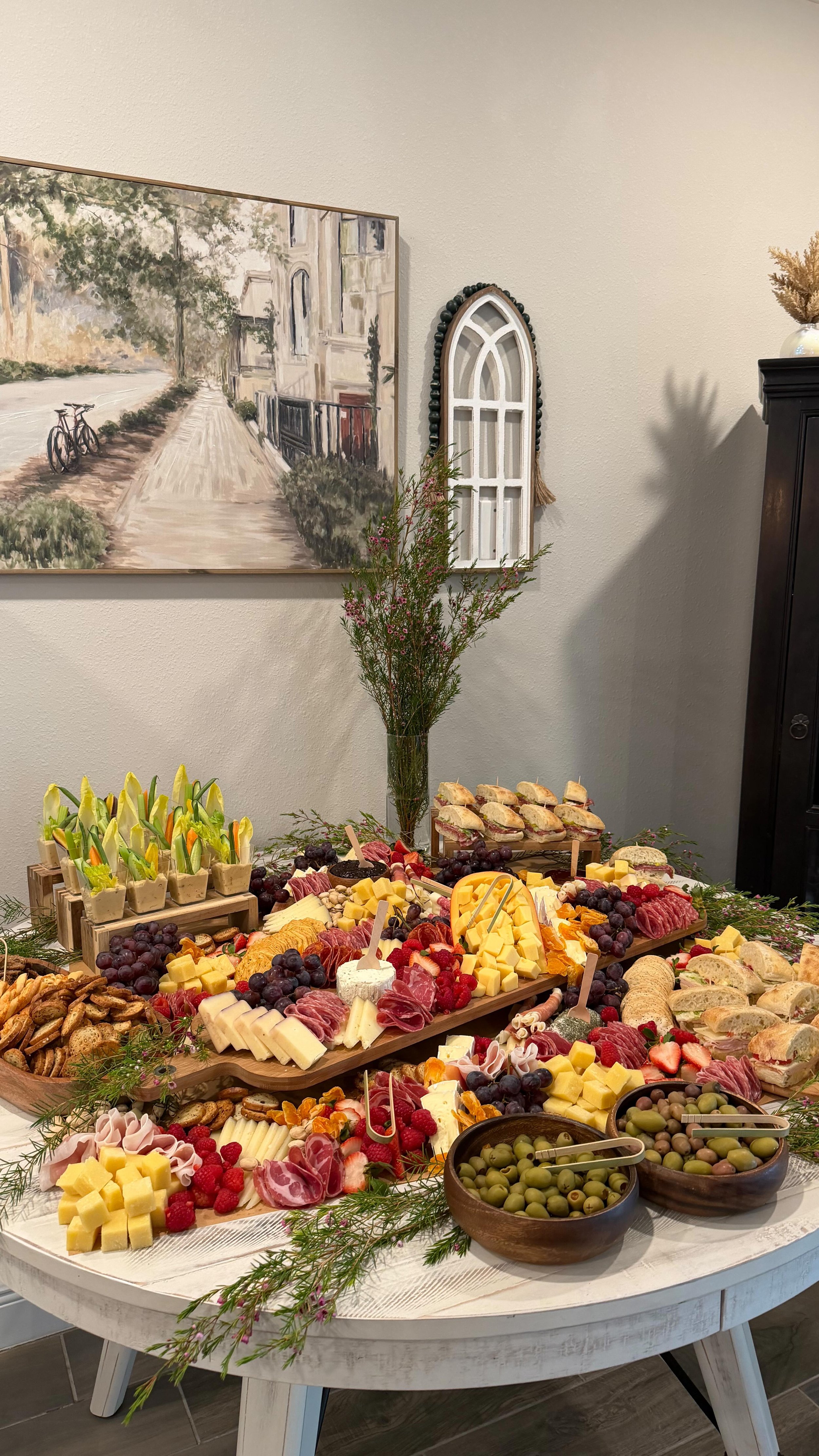 Elevate your next event with our beautifully curated charcuterie catering. Whether you're hosting a corporate gathering, bridal shower, birthday, or intimate celebration, we bring fresh, artfully arranged grazing boards and tables that delight the senses and spark conversation. Each spread is customized to your occasion, taste, and style crafted with love and locally sourced ingredients.
